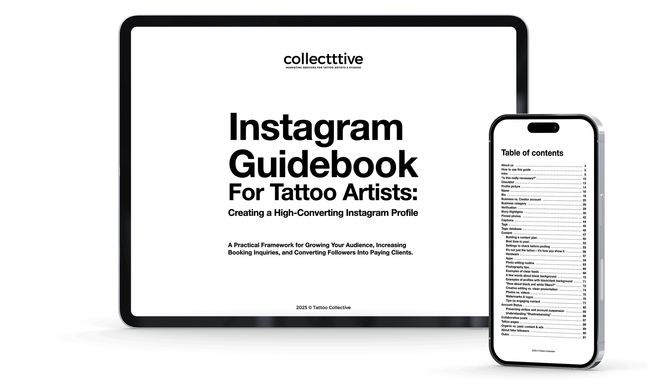 While the guidebook is primarily tailored for individual tattoo artists, the strategies and tips are highly applicable to tattoo studios as well. The recommendations can be adapted to a studio’s specific context, and many of the practices outlined — such as optimizing profiles, creating engaging content, and using hashtags effectively — are equally beneficial for studios managing multiple artists’ accounts.